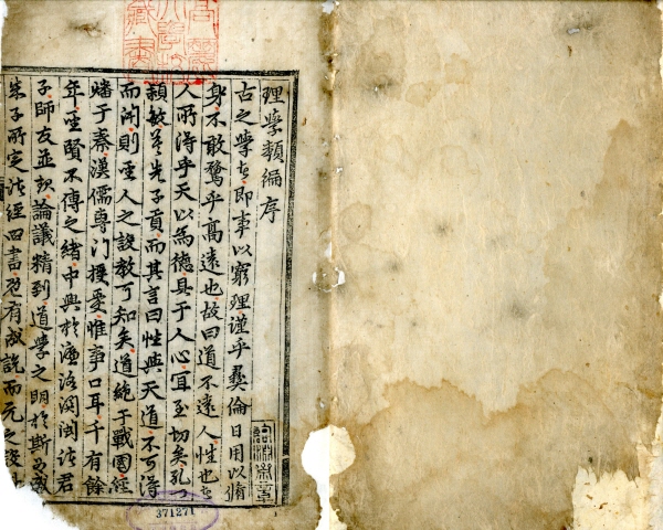 HOME > 자료이용 > 아카이빙 > 고서배접 > 고서배접 리스트 고서배접 이용안내 고서배접 과정 고서배접 리스트 理學類編 작성자 구자훈 이메일 dmafks@korea.ac.kr 작성일 2013-08-22 15:26 조회 895 청구기호 만송 貴 254 1 등록번호 461371271 褙接 2011年 10月 全卷褙接(고려대) 복원전 복원후 Remarks 뒤쪽 불에 타서 동그랗게 없어지고, 앞쪽 하단 모서리 불에 타서 없어짐. 얼룩 있고 푸석푸석함. 상태 매우 나쁨. Attachments IMG1377152824338.jpg B031377152824360.jpg B021377152824351.jpg B011377152824348.jpg A031377152824371.jpg A021377152824368.jpg A011377152824363.jpg « 后山詩註 性理大全書節要 » 목록보기